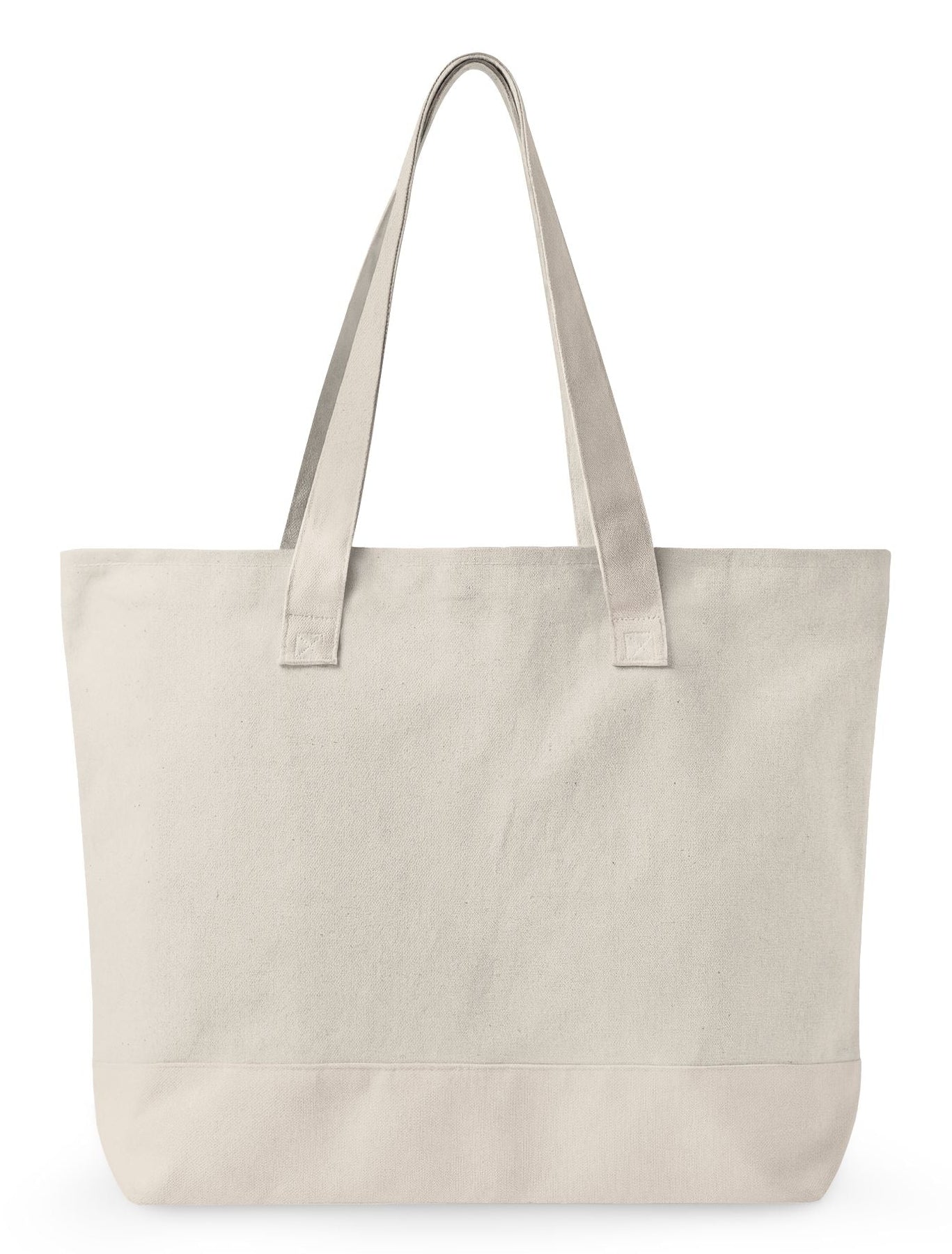 This baby tote bag is canvas in natural color.