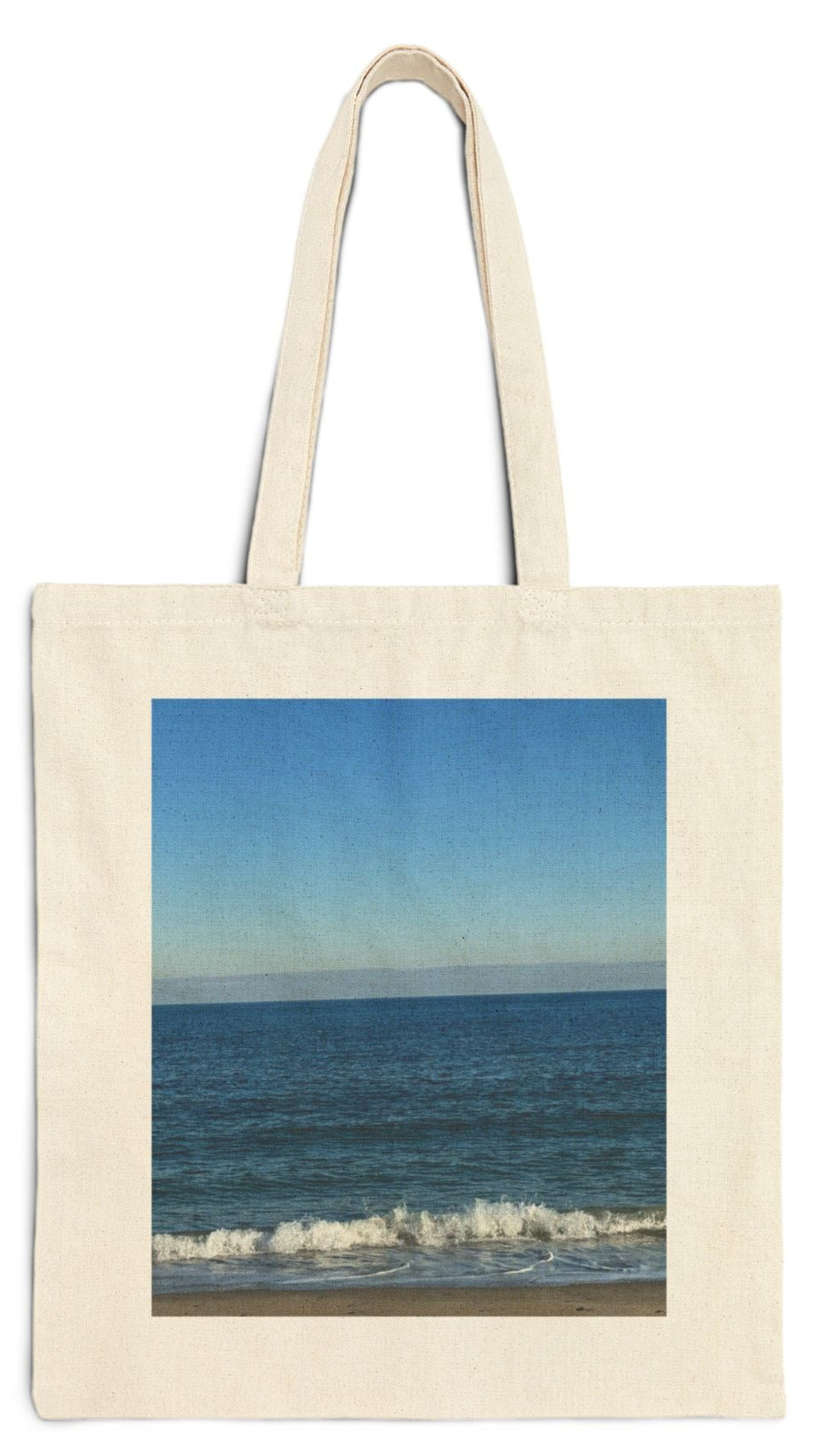 Beach Tote Bag Natural Color 15" x 16" Cotton Canvas Print on One Side. "Mild Waves"