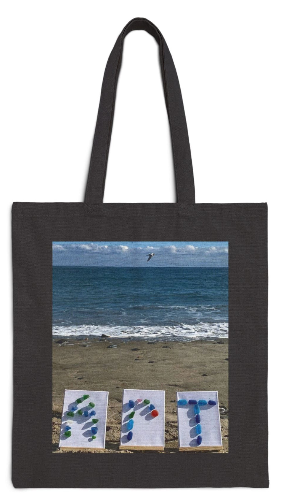 Art Tote Bag Black 15" x 16" Cotton Canvas Print on One Side. "Beach Art"