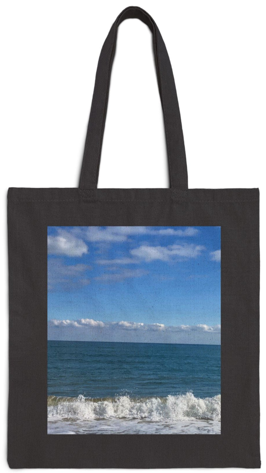 Beach Tote Bag Black 15" x 16" Cotton Canvas Print on One Side. "Big Waves"