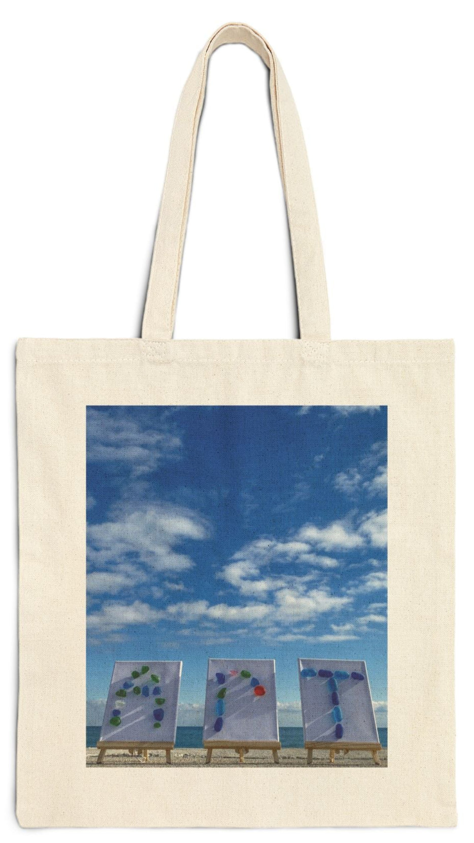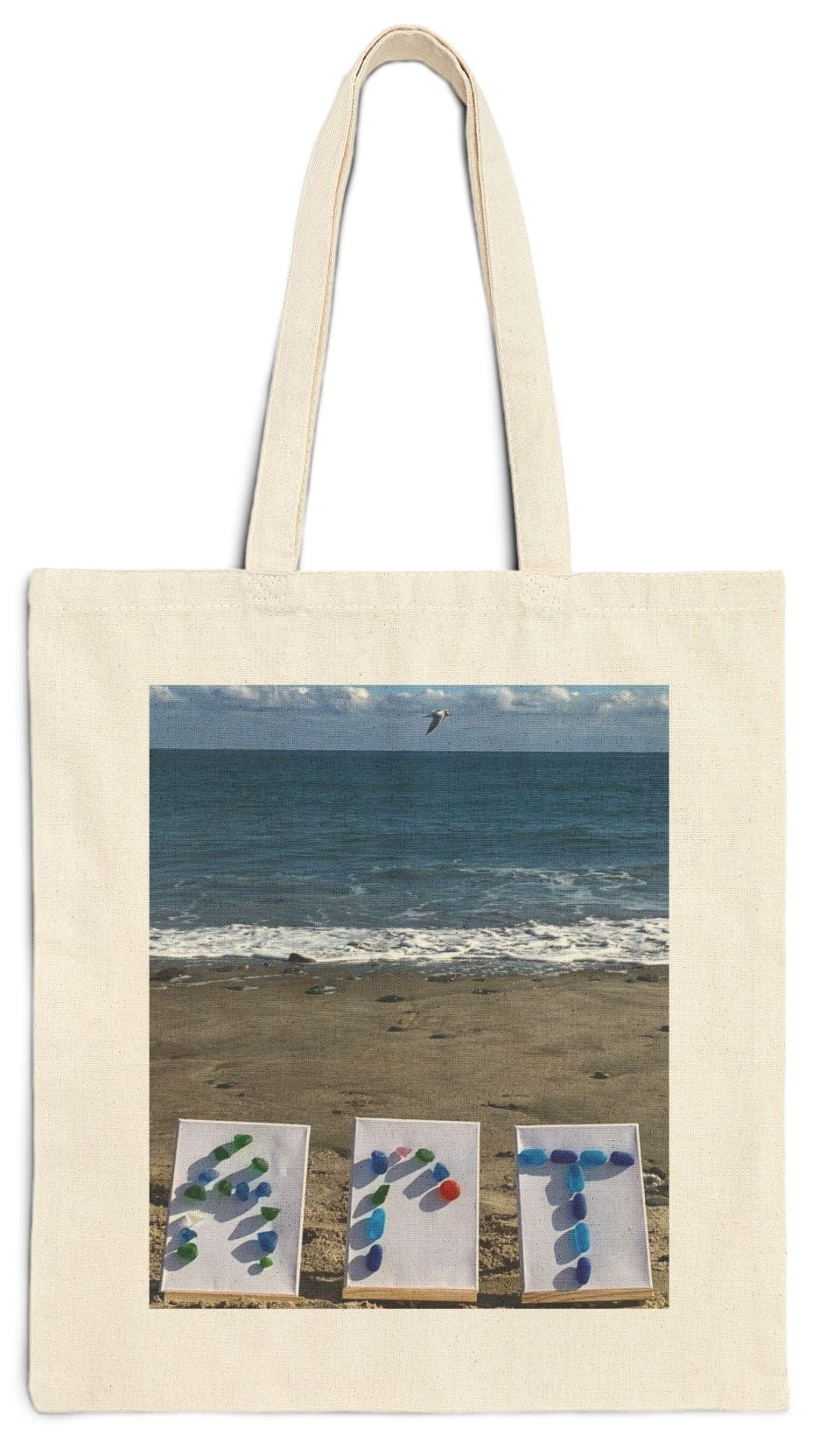 Art Tote Bag Natural Color 15" x 16" Cotton Canvas Different Print on Each Side. "Beach Art & Seaside Art"