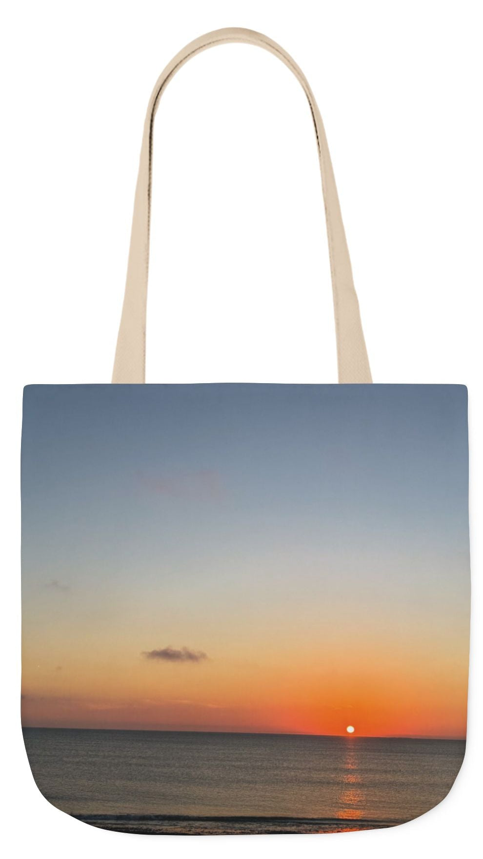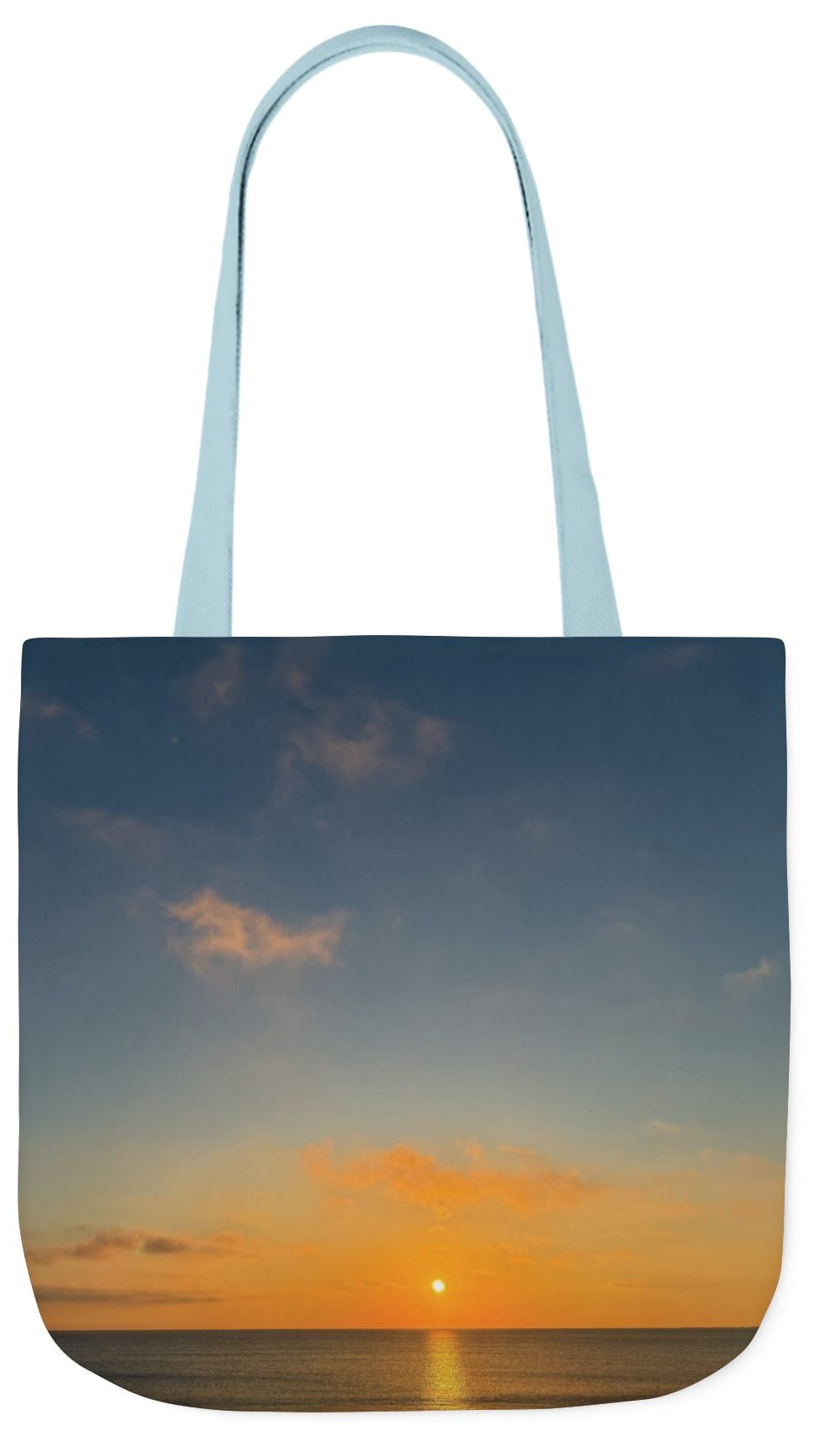Roomy, machine washable 18" x 18" Everyday Tote Bag made of polyester with a black interior lining and different print on each side. 5 handle color options (White, Blue, Black, Pink, Beige).