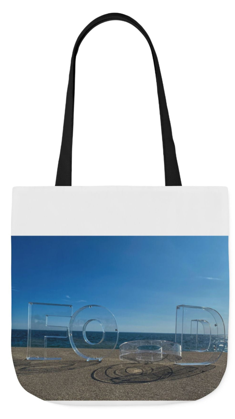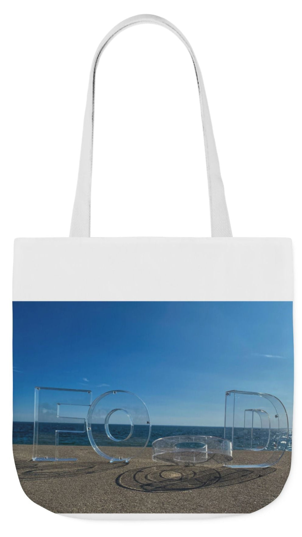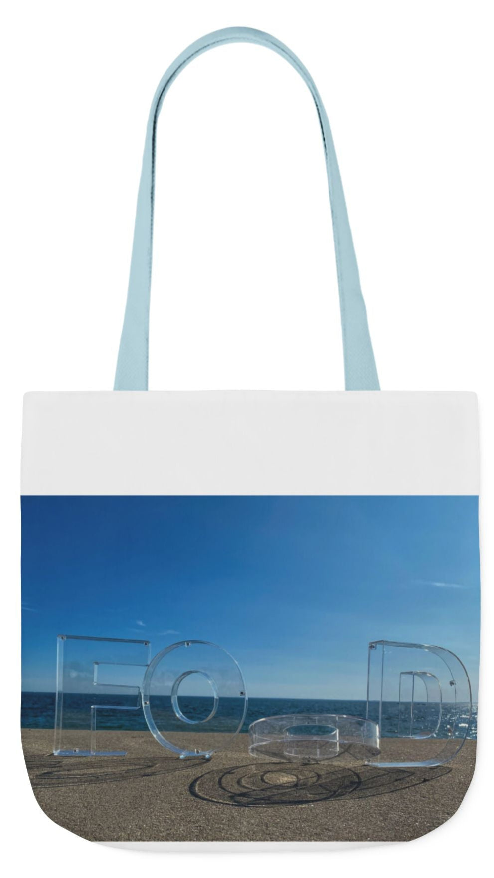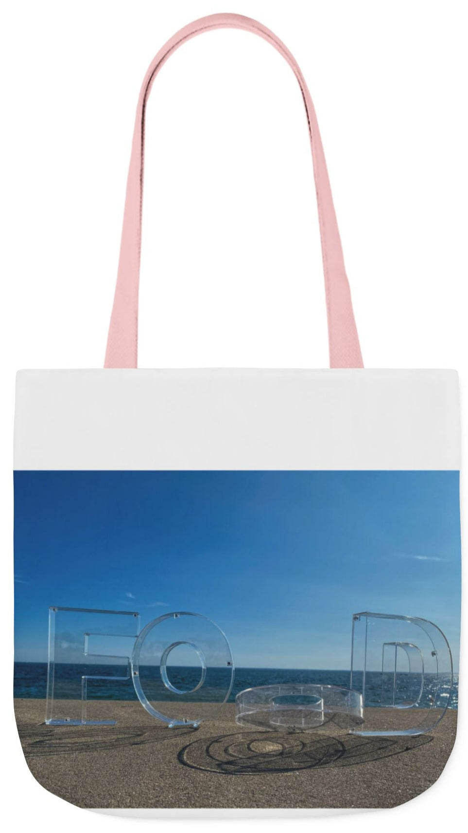 Food Tote Bag 18" x 18" Different Print on each side. 4 Handle Color Choices. "Seaside Food Reflections"