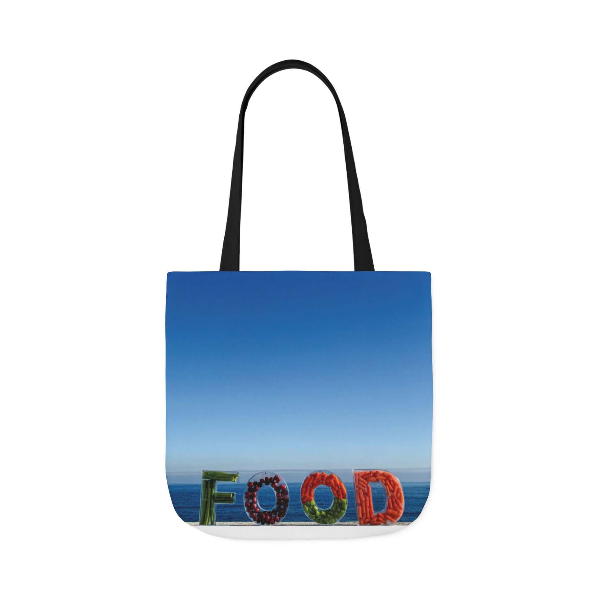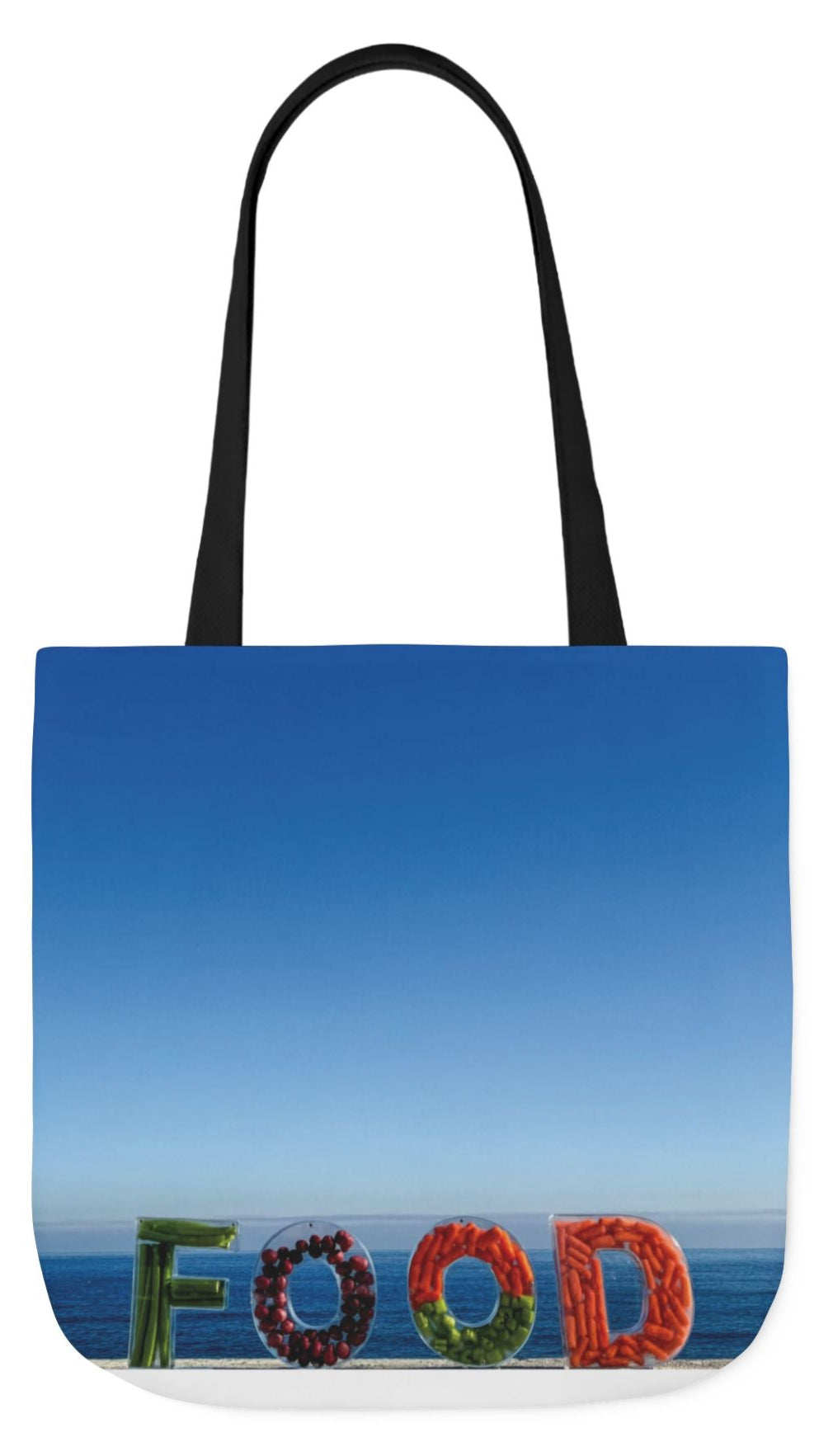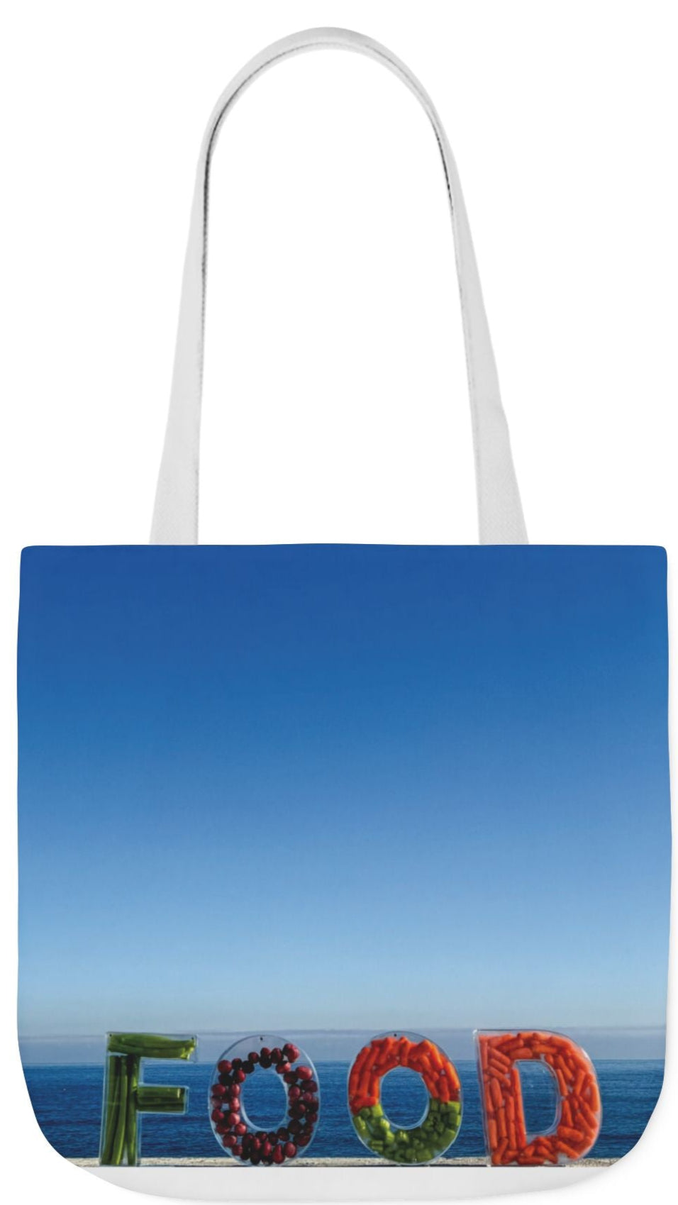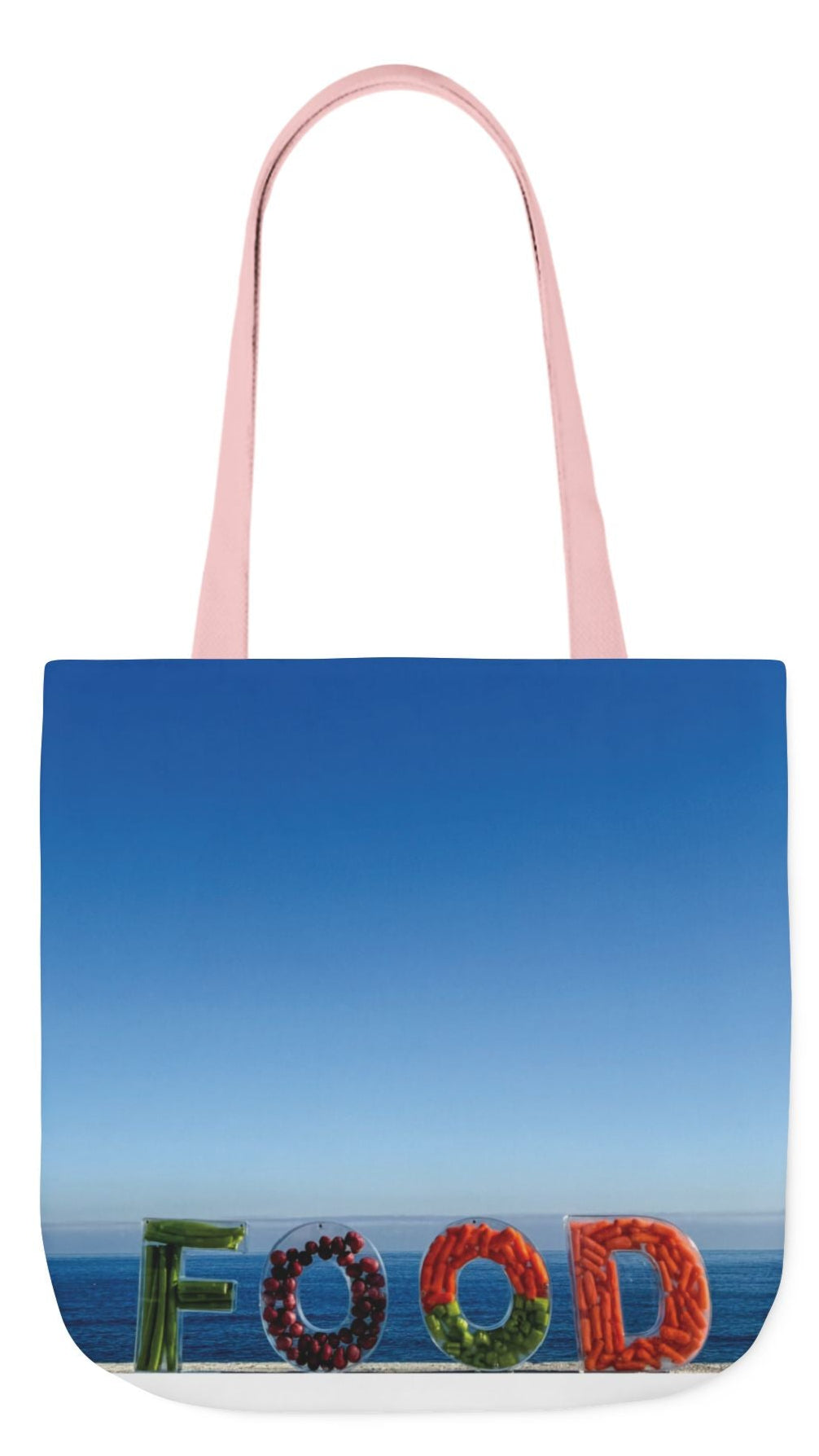Food Tote Bag 18" x 18" Same Print on Both Sides, 4 Handle Color Options, "Seaside Veggie Food Bag"