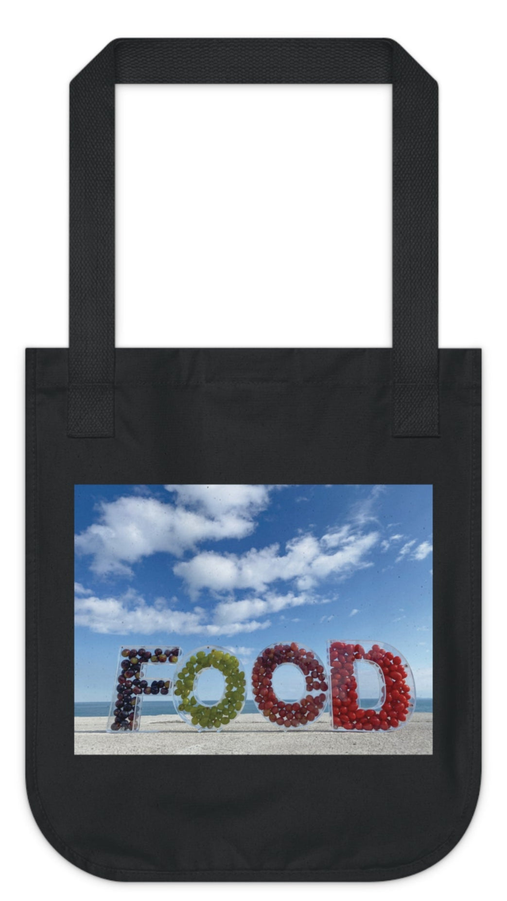 Food Tote Bag Organic Cotton Canvas"14.50 x 12.50" (Print on One Side) Colors: Natural, Black, Blue. "Seashore Food Bag".