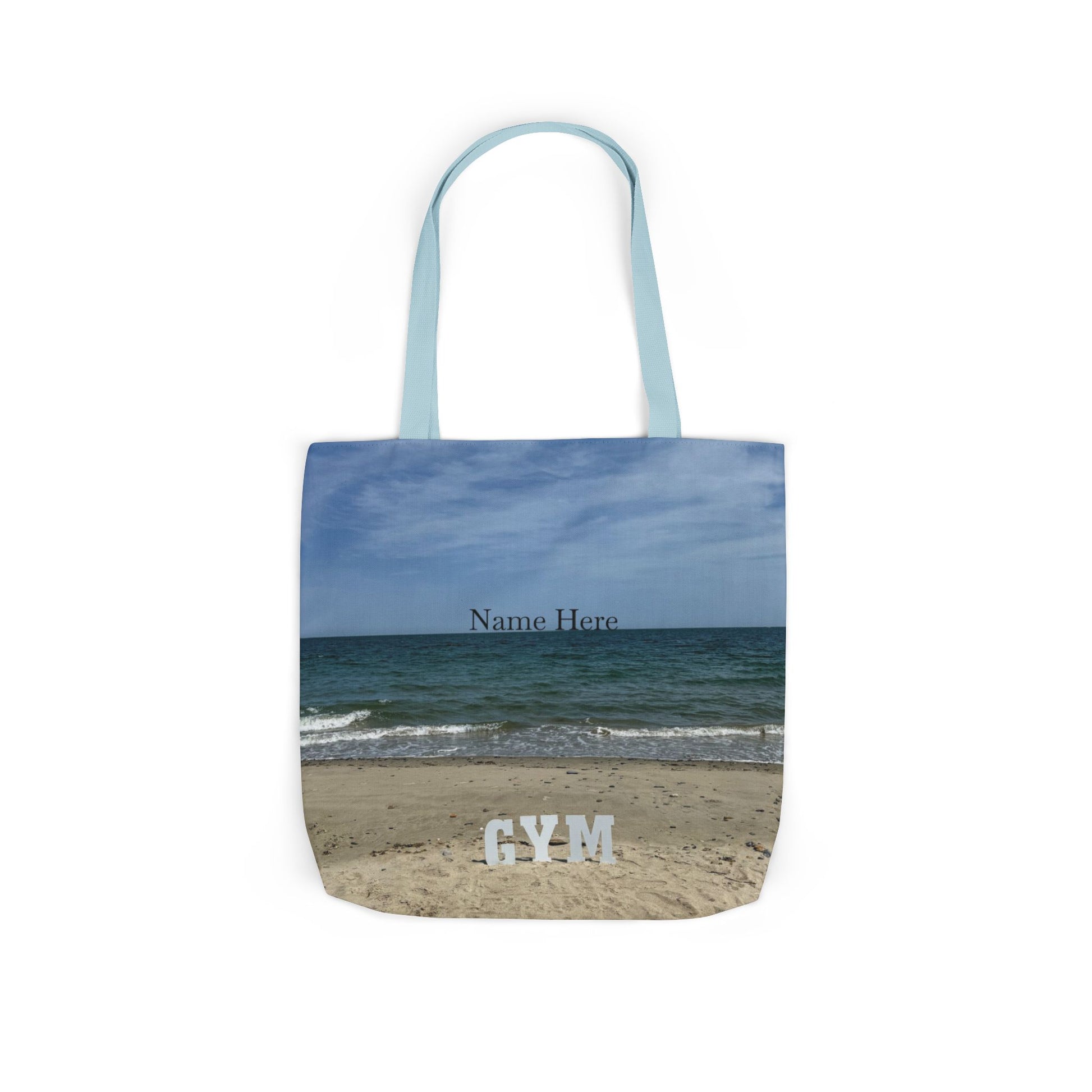 Gym Tote Bag 18” x 18” Same Allover Print on Each Side. 4 Different Handle Color Options. “Beach Gym Bag” (Personalize it)