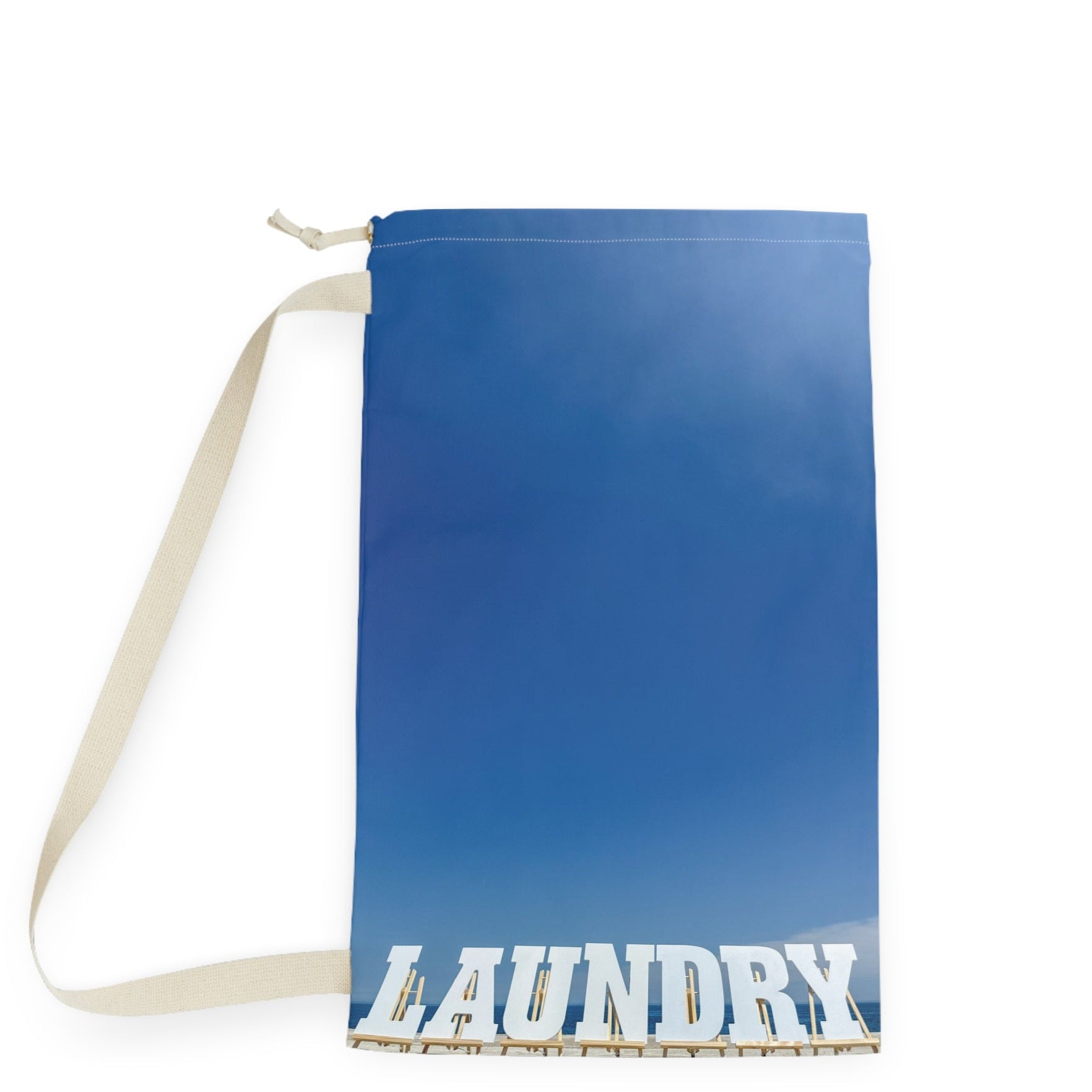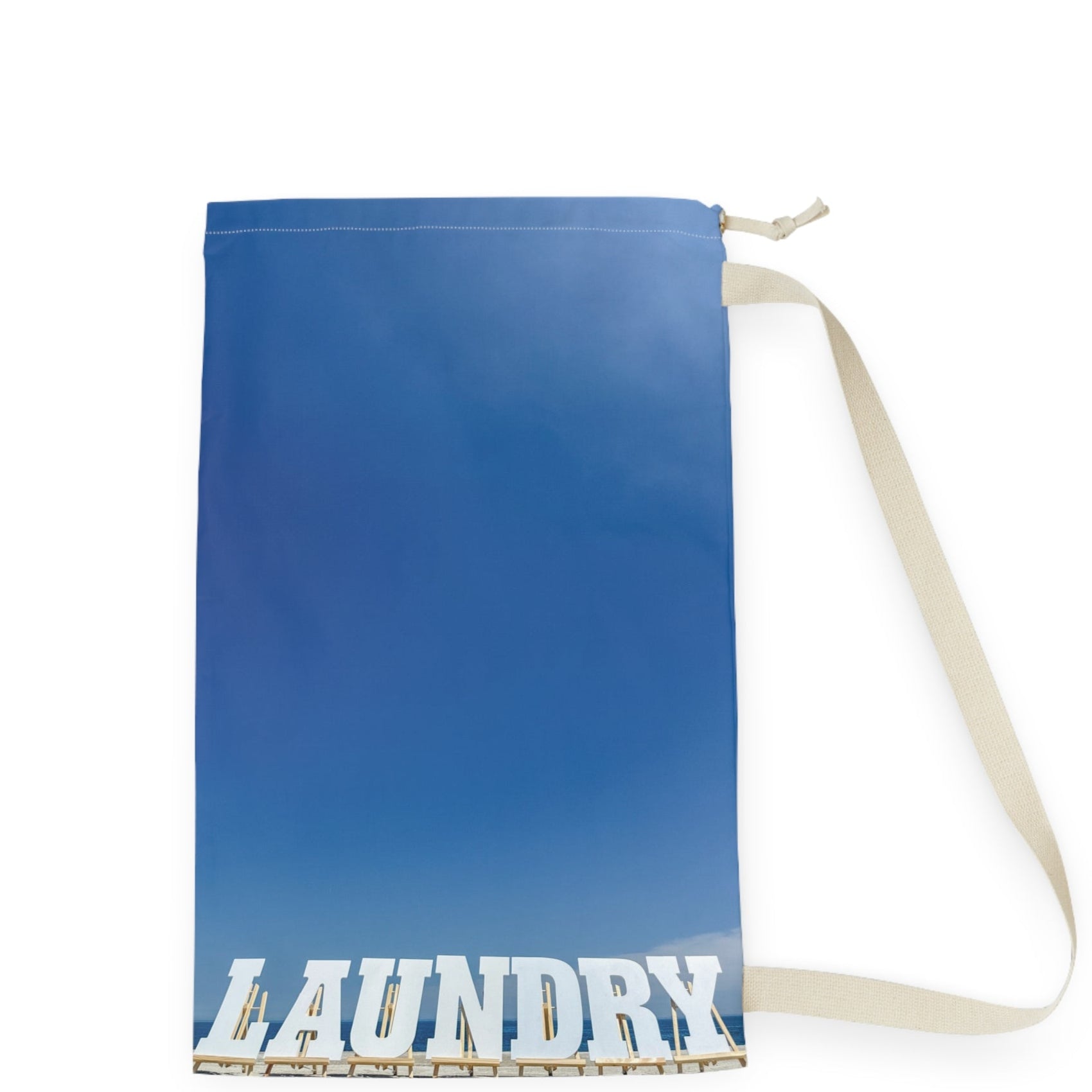 Add a shoreline scene to your laundry day with this 18" x 29" laundry bag made of polyester with shoulder strap and drawstring.