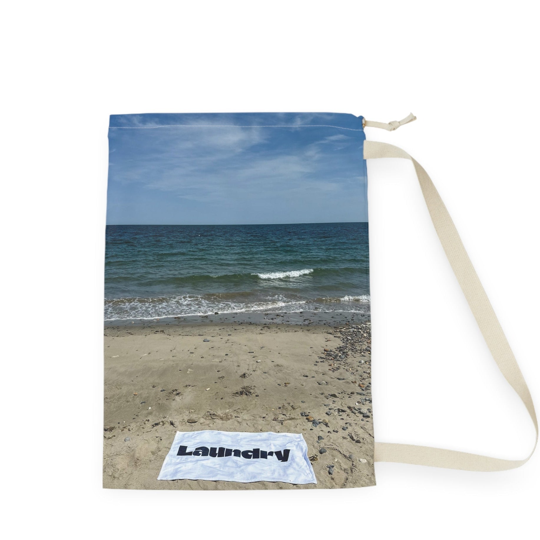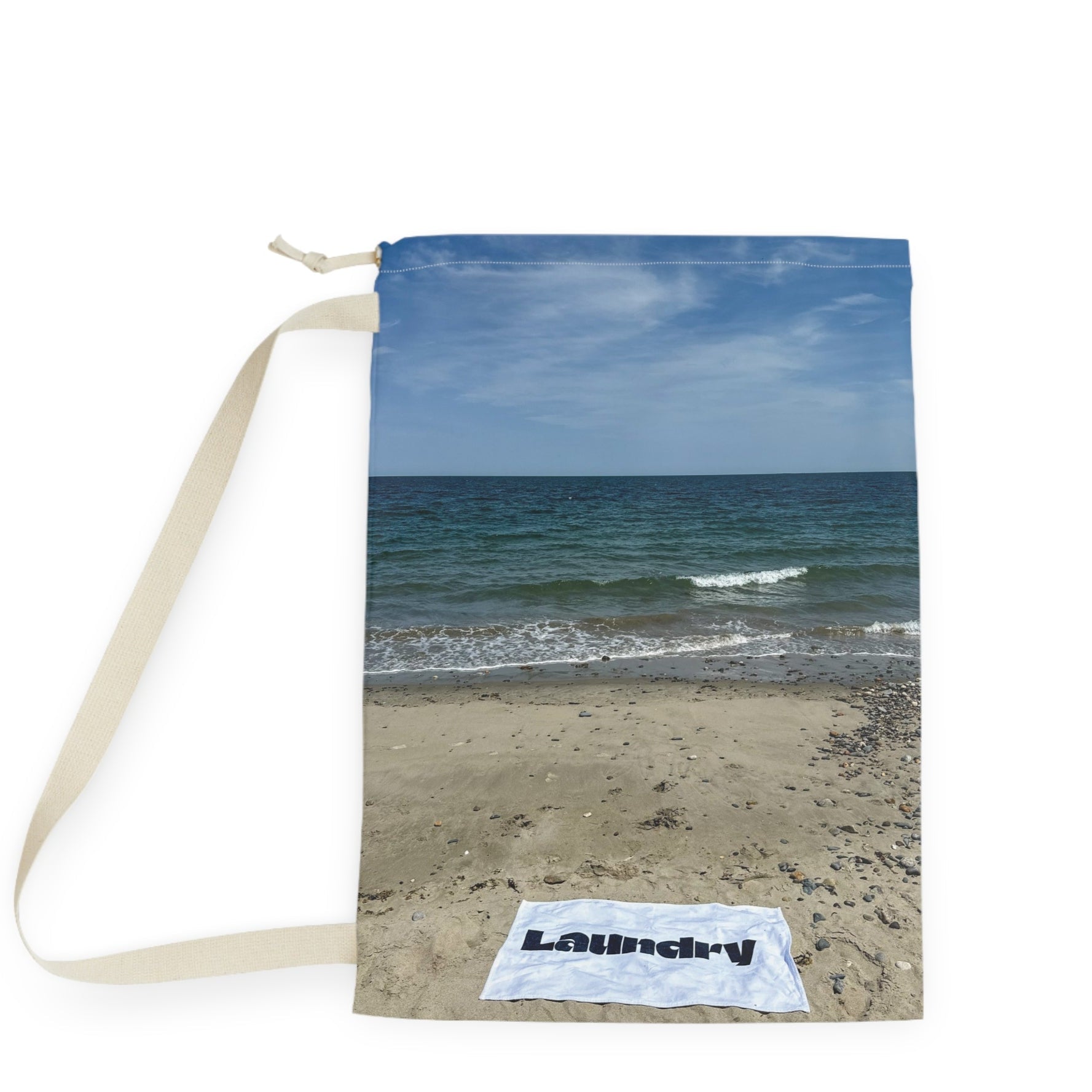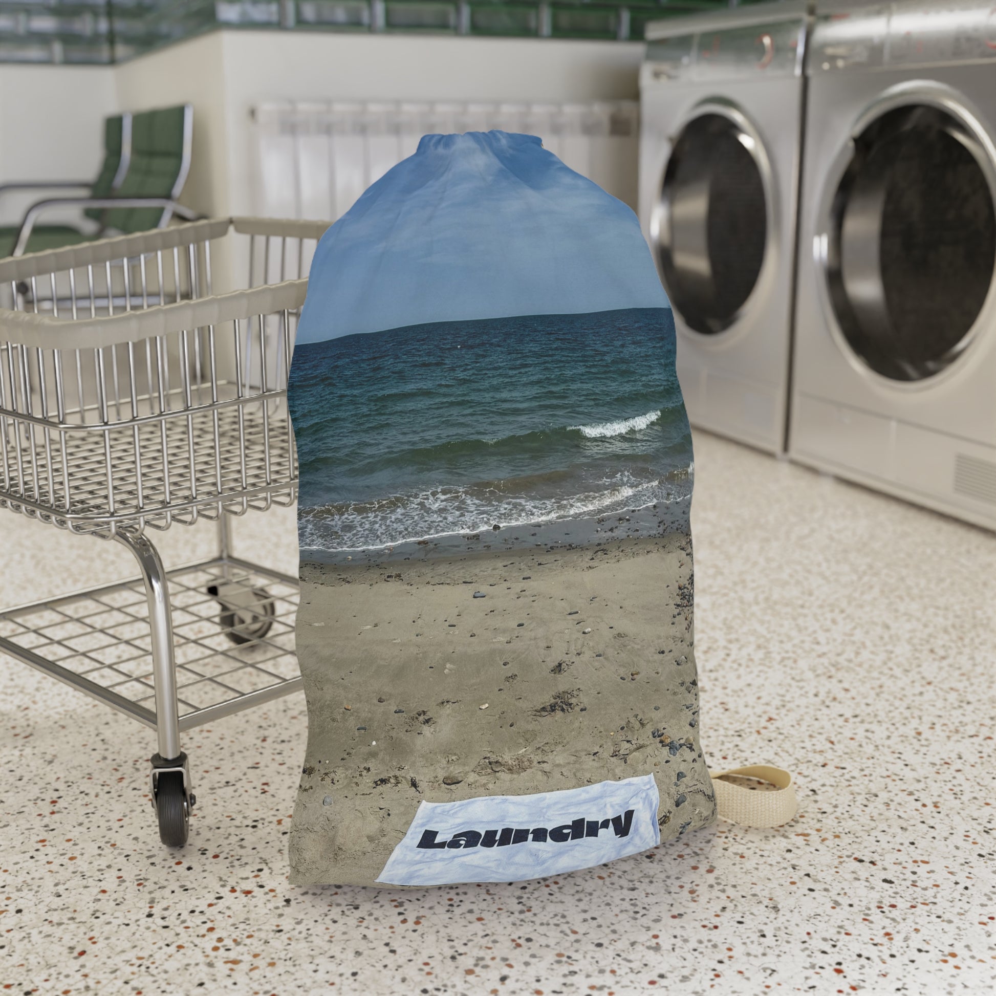 Add a seaside scene to your laundry day with this "28 x 36" laundry bag with shoulder strap and drawstring made of polyester.