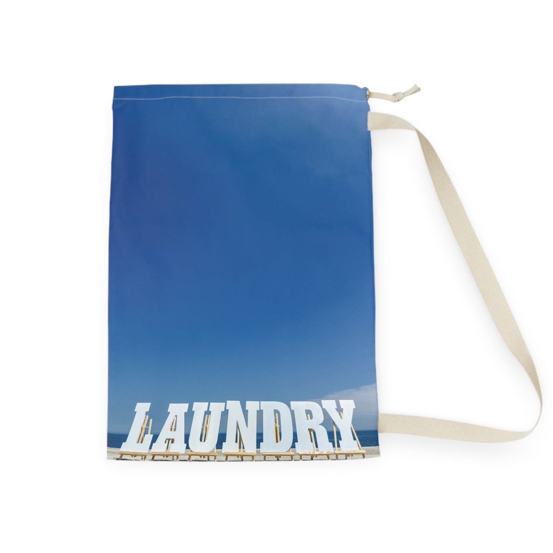 Add a shoreline scene to your laundry day with this "28 x 36" laundry bag with shoulder strap and drawstring made of polyester.