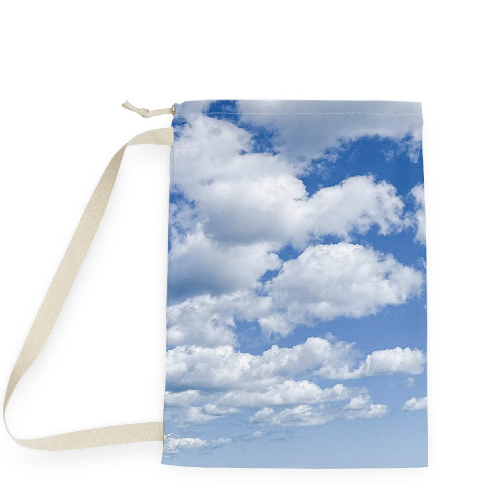 Add a seaside bright clouds scene to your laundry day with this 28" x 36" laundry bag made of polyester with shoulder strap and drawstring.