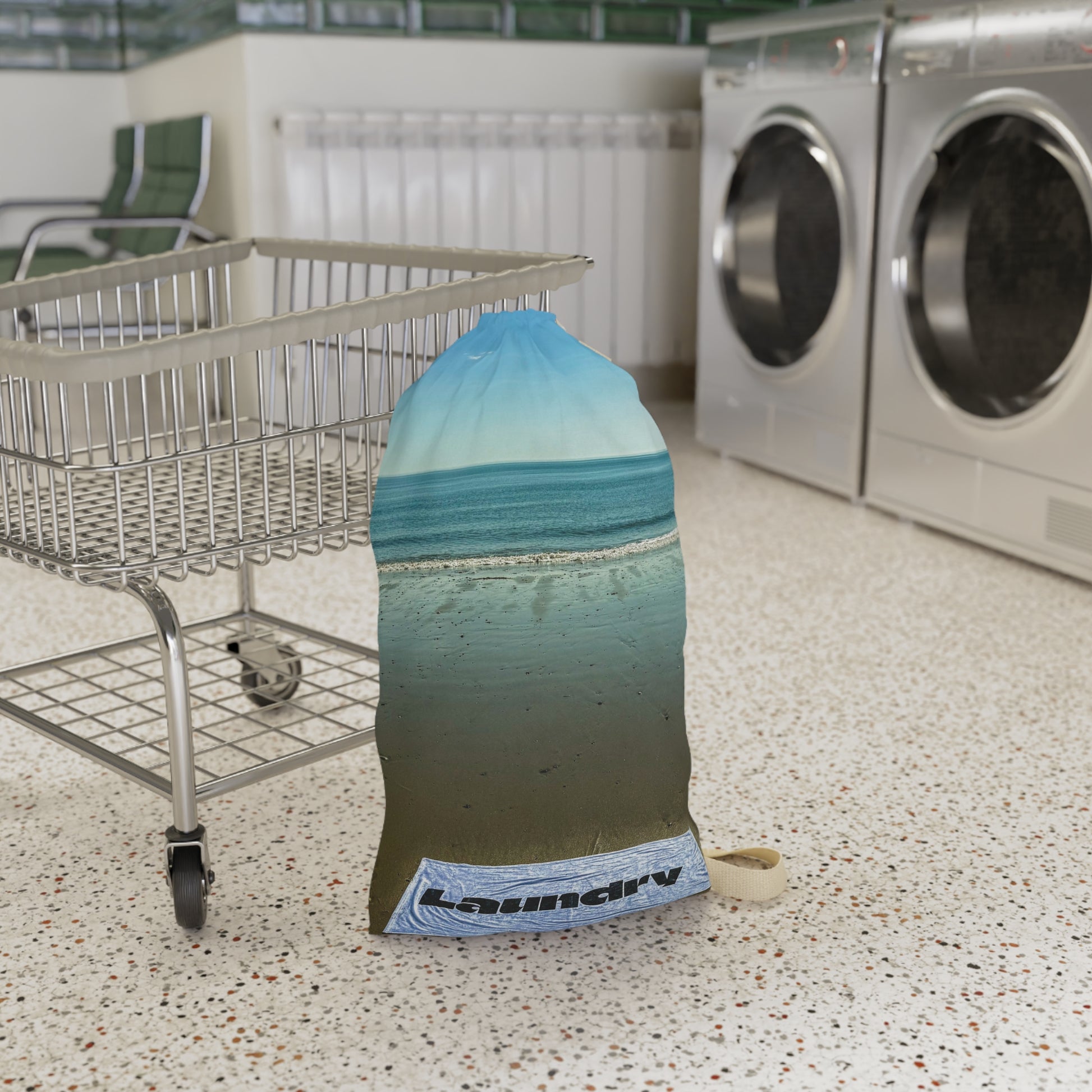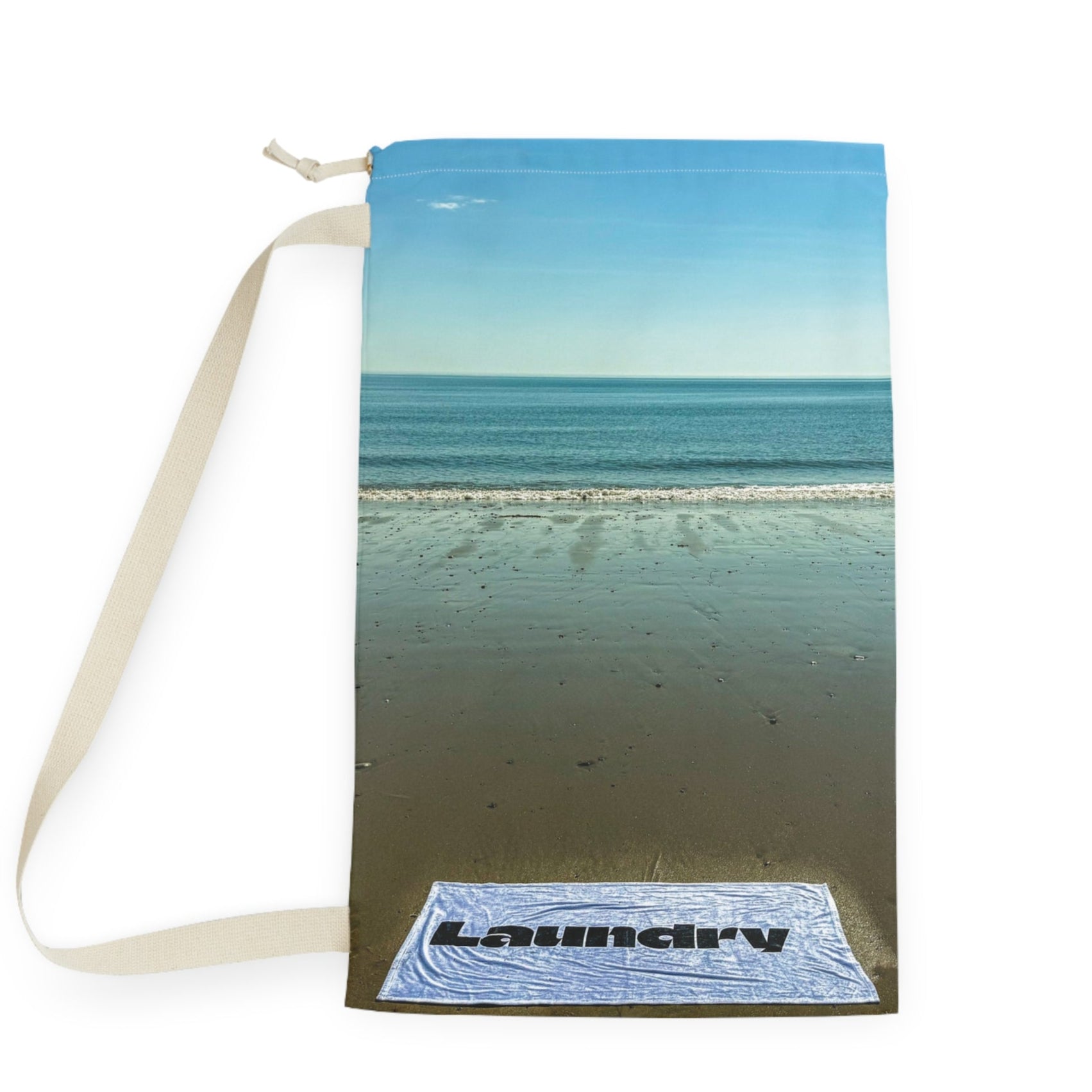 Add a shore scene to laundry day with this "18 x 29" laundry bag with shoulder strap and drawstring made of polyester.