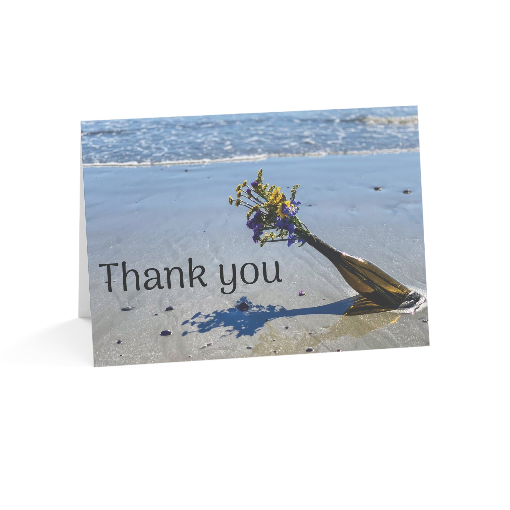 Set of 10 Thank You Cards with matching envelopes and a Matte Finish “Seaside Flowers in a Bottle”